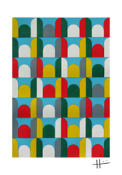 Die Idee für das Bild «Lausanne 2022» stammt aus Lausanne. Das Bild reflektiert die Struktur des Fensters über dem Haupteingang des Lausanner Bahnhofs. Die verwendeten Farben sind ein Konzentrat des bunten Treibens auf dem Bahnhofvorplatz und darüber hinaus. Die zugrunde liegenden Fotos und Erinnerungen haben sich im Sommer 2022, während einer Tagesreise durch die Westschweiz, angesammelt.